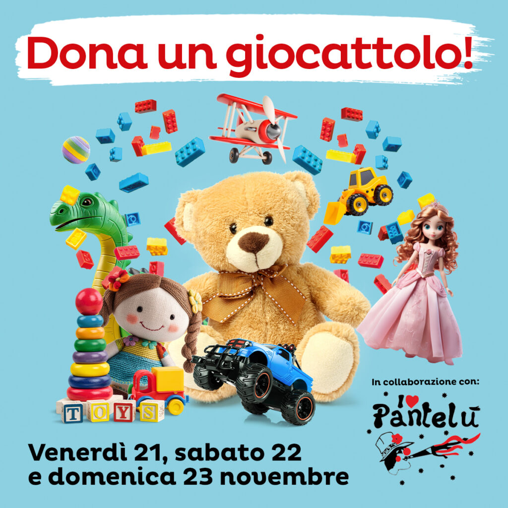 Venerdì 21, sabato 22 e domenica 23 novembre:acquista un giocattolo nel nostro Centro Commerciale e consegnalo alla postazione di Associazione Pantelù.I giocattoli saranno donati al REPARTO DI PEDIATRIA DELL’OSPEDALE DI CREMA e alle Associazioni del territorio.