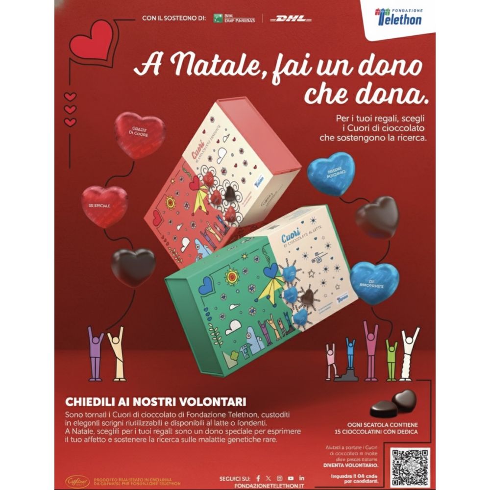 Domenica 14 Dicembre I volontari della Fondazione Telethon ti aspettano al Gran Rondò!Vieni a trovarci per sostenere la ricerca sulle malattie genetiche rare. Con un piccolo gesto, puoi fare una grande differenza!Scegli i Cuori di cioccolato di Telethon: sono il regalo perfetto per Natale che fa bene due volte, perché ogni Cuore sostiene la ricerca.Non […]